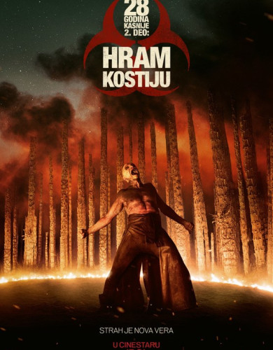 28 GODINA KASNIJE: HRAM KOSTIJU (28 Years later) -109 minuta – Jučer – horor – 2D – glumci: Ralph Fiennes, Jack O'Connell, Alfie Williams, Erin Kellyman, Chi Lewis-Parry; režija: Nia DaCosta; U nastavku epske priče, dr Kelson (Ralf Fajns) ulazi u šokantnunovu vezu – sa posledicama koje bi mogle zauvek promeniti svet kakav poznajemo – dokSpajk (Alfi Vilijams) nailazi na Džimija Kristala (Džek O’Konel) u susretu koji se pretvara u košmar iz kog nema bega. U svetu Hrama kostiju, zaraženi više nisu najveća pretnjaopstanku – neljudskost preživelih može biti još bizarnija i zastrašujuća.