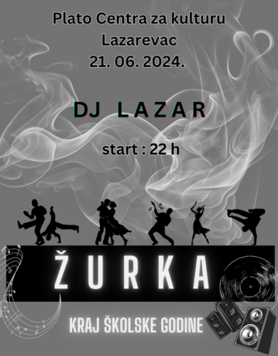 U okviru manifestacije "Kulturno leto 2024" - i kraja školske godine, oragnizujemo žurku za srednjoškolece na platou CZK Lazarevac.