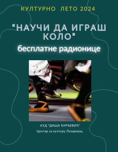 U okviru Kulturnog leta 2024, Centar za kulturu Lazarevac i KUD "Diša Đurđević" organizuju besplatne radionice "Nauči da igraš kolo"