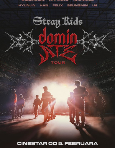 STRAY KIDS: The Dominate experience – 146 minuta – Taramount – muzički film – 2D – glumci: Stray Kids, Bang Chan, Lee Know, Changbin , Hyunjin , HAN , Felix , Seungmin, I.N; režija: Paul Dugdale, Farah X; Film o globalnoj K-Pop senzaciji Stray Kids, uz snimkeuživo koji su napravljeni tokom njihove svetske turneje koja je oborila sve rekorde, kao iekskluzivne kadrove „iza scene“ i iskrene, emotivne intervjue sa članovima benda.