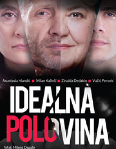 „Idealna polovina“ je urnebesna komedija o četvoro ljudi koji, u želji da pronađu sebe – svako u svom životnom dobu – upadaju u neočekivane situacije iz kojih moraju da se izvlače kako znaju i umeju. Majka Danica (Zinaida Dedakin) nikako ne može da prihvati činjenicu da joj se sin Aca (Milan Kalinić) iselio iz kuće i oženio u 45. godini života. Na sve načine pokušava da ostane u centru pažnje. Čak ni lični psihoterapeut Ana Marija (Anastasia Mandić), koju joj je snaja obezbedila, ne uspeva da je odvrati od stalne brige da li joj je sin na vreme jeo i da li mu je sve u redu. Sa druge strane, sin Aca, naviknut na toliku pažnju i pomalo opsednut sobom, za svaku nedoumicu trči kod svog ličnog trenera Filipa (Vučić Perović), kako bi dobio dodatno samopouzdanje i dokazao sebi da, iako je zakoračio u kasne četrdesete, i dalje može da bude „muškarčina“. Svo četvoro, neprestano preplićući svoje karaktere, stavove, želje, dileme i strahove, nalaze se u potrazi za ljubavlju, srećom i svojim idealnim prilikama i partnerima. Predstava postavlja pitanje: da li uopšte postoji „idealno“ i „idealna“, ili je to samo deo naših želja i snova? Kroz smeh, publika se približava ovim sudbinama, neobičnim situacijama i zapletima, prateći njihove emotivne i životne borbe.